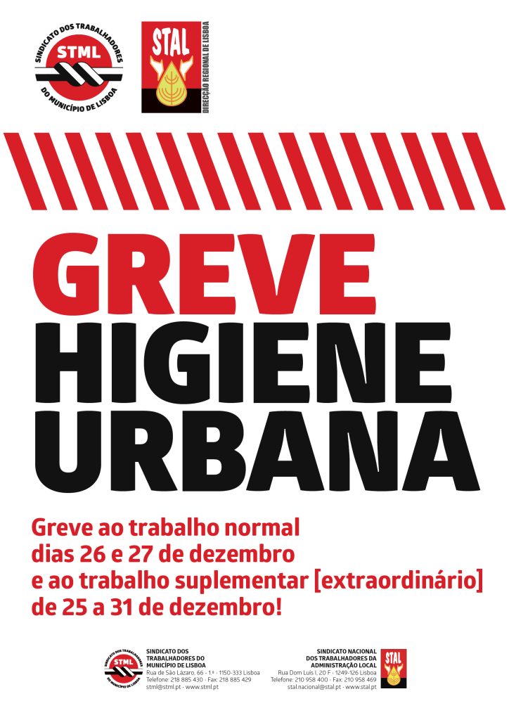 No âmbito da Greve ao trabalho normal e trabalho suplementar [extraordinário] determinada para o período de 25 a 31 de dezembro, o STML e o STAL irão organizar piquetes de…